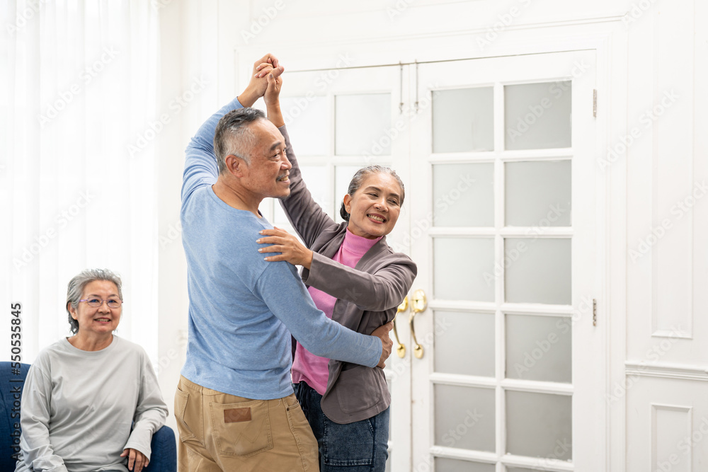 Group of senior people enjoying with activities together. Elderly people having fun concept. Happy senior playing guitar and singing songs having fun together.