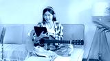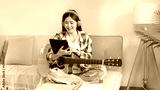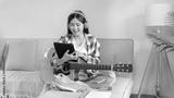 Woman practicing or learning to play guitar and practice using his fingers to hold guitar chords while looking at music notes with intention, Taking advantage of free time, Relax during free time.