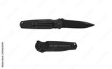 Pocket folding knife isolate on white back. Compact metal sharp knife with a folding blade.