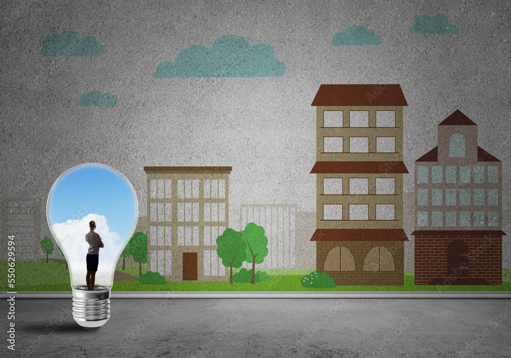 Businesswoman trapped in bulb