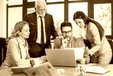 Group of mixed age business people discussing business strategy on a meeting in office.