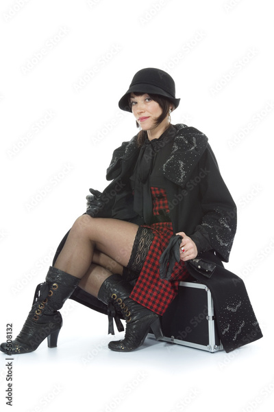 Beautifu lbrunette with valise on isolated background