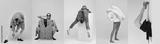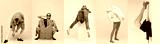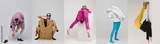 Collage. Young man and woman in bright stylish clothes posing isolated over grey background. Inner world, psychology