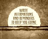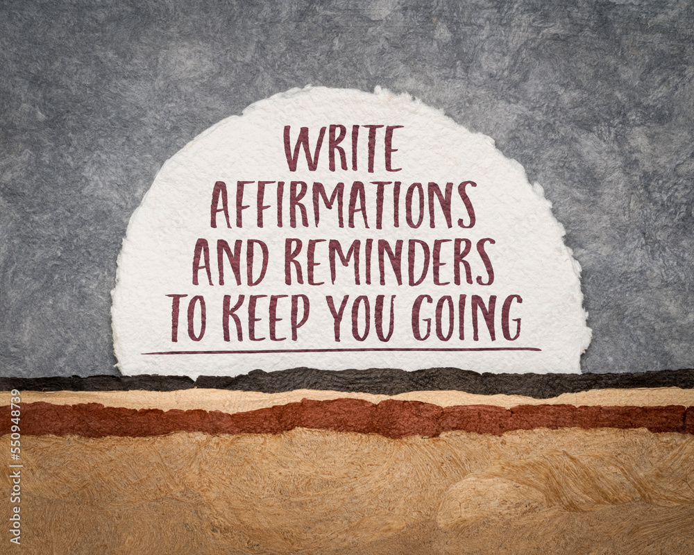 write affirmations and reminders to keep you going - inspirational handwriting on a handmade abstract paper landscape, success and personal development concept