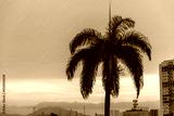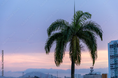 city skyline at sunset with palm tree