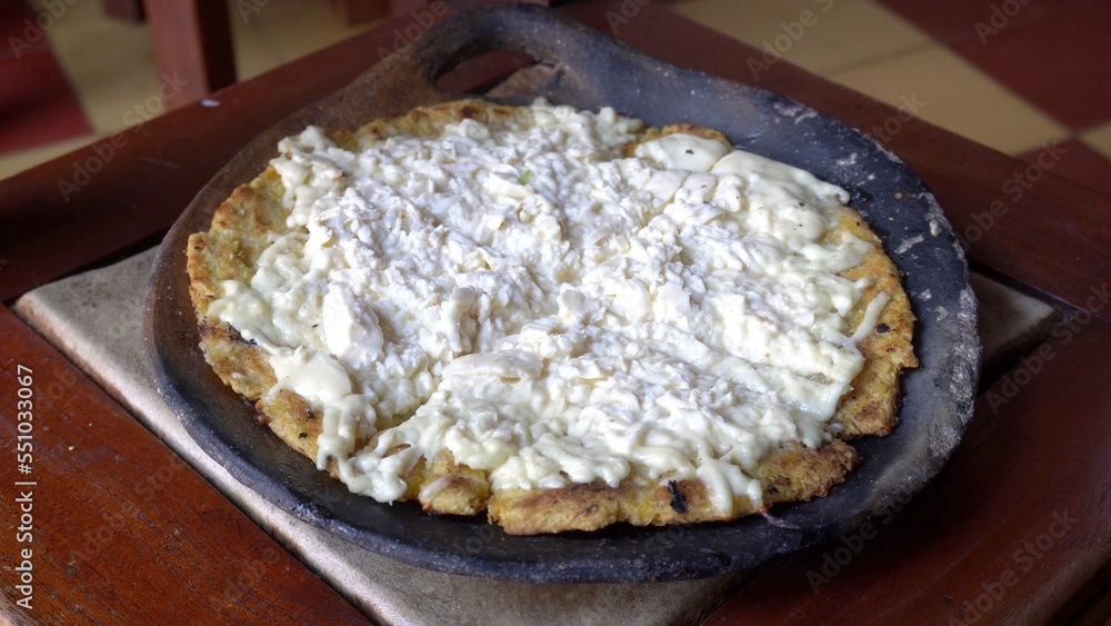 Arepa is a type of food made of ground maize dough stuffed with a filling, eaten in the northern region of South America since pre-Columbian times - cuisine of Colombia and Venezuela - cheese arepas