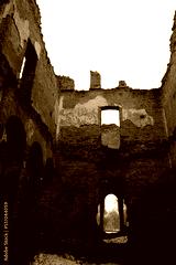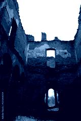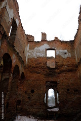 Ruins in the Palace and Park Ensemble. The ruins of the palace and houses made of high-quality, durable bricks. Destroyed during the war. Gostilitsy village, Lomonosovsky district, Leningrad region. R
