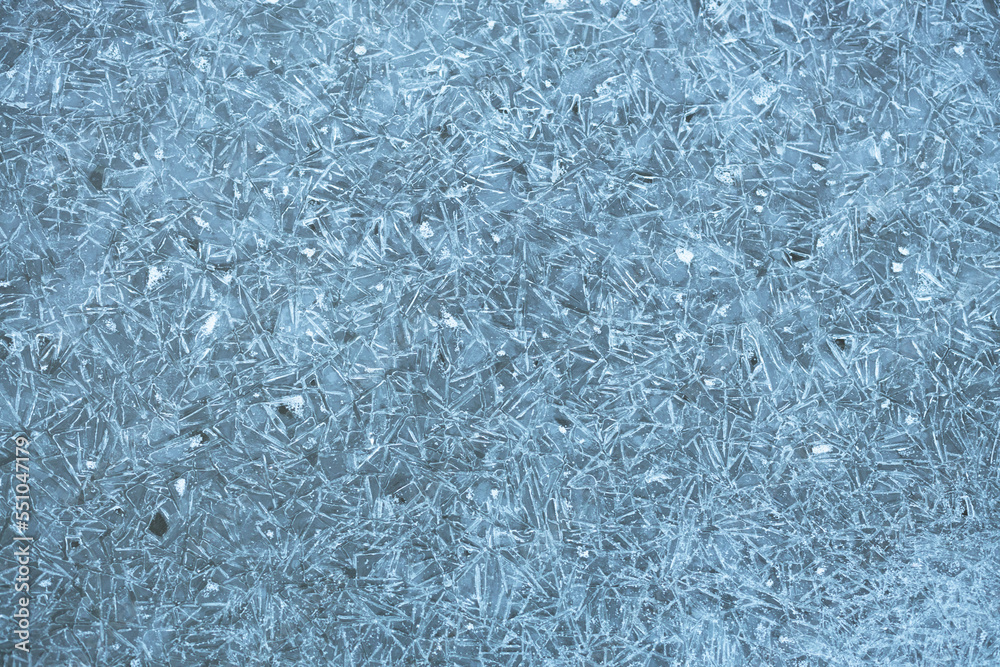 ice pattern on a puddle on a frosty morning, first frosts, cold season background