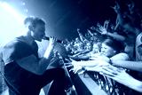 Man, singing music and concert with crowd, energy and crazy fan, rock performance and festival with audience. Singer, audio sound and music festival with live show, people and artist sing to women