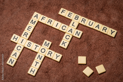 February - African American (or Black) History Month crossword in ivory letter tiles against textured handmade paper, annual observance originating in the United States