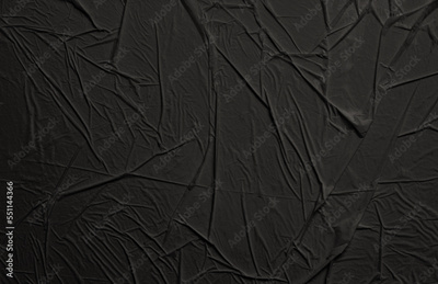 Empty crumpled wet black paper blank texture copy space wall horizontal background.