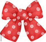 cute white polka dot on red ribbon hair bow tie watercolour illustration
