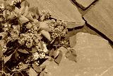 A lilac bush lies on a concrete surface in the spring