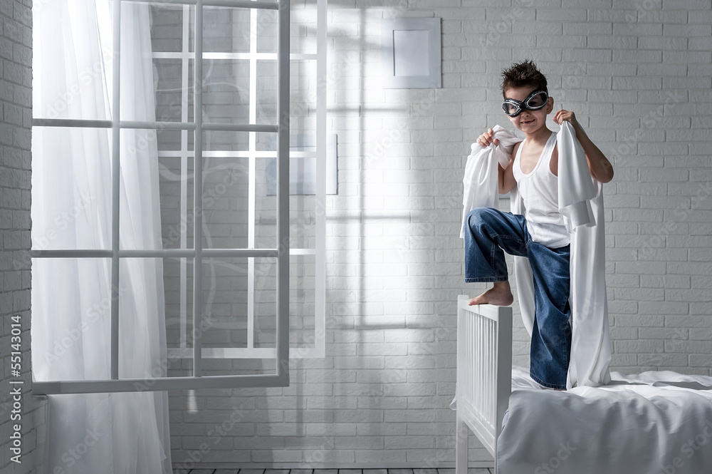 Boy in the role of a pilot