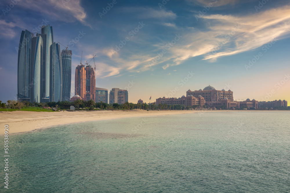 Cityscape of Abu Dhabi at Persian Gulf, UAE.