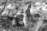 Mountain hare standing still on an autumnal hillside in Urho Kekkonen National Park, Northern Finland