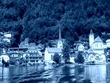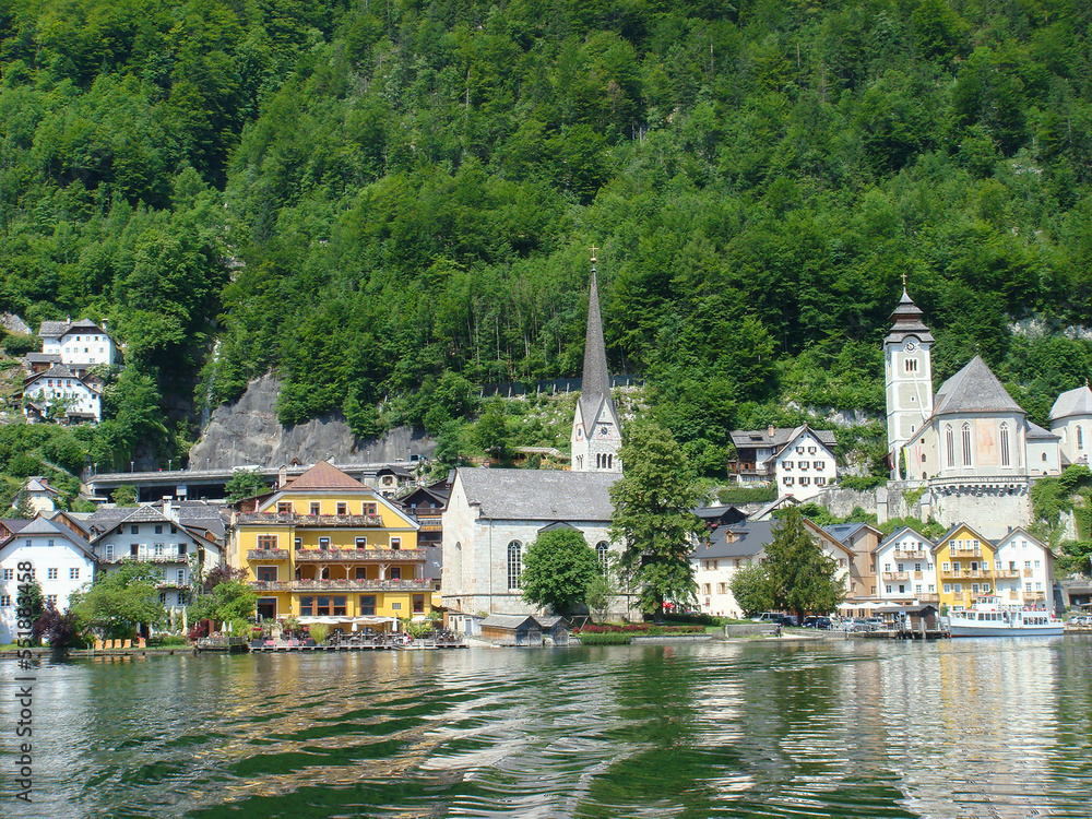 Beautiful view of lake and town on a summer day. Hallstatt. Austria.