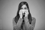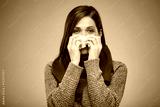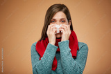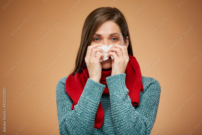 Sick woman with allergy. isolated female portrait. Medicine advertising concept.