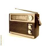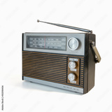 Retro radio receiver from the 70s. Isolated on white background. Traces of time and abrasions on the body