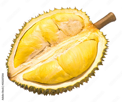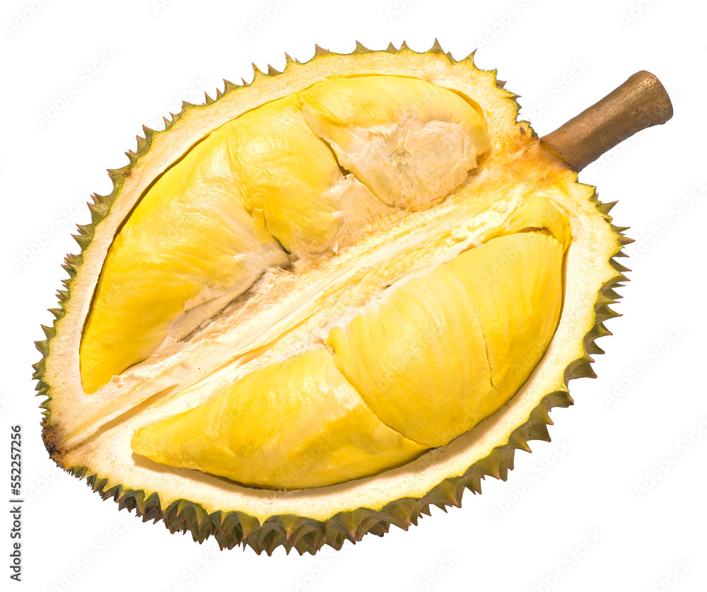 Fresh durian with leaf on white background, Durian fruit on white PNG file.