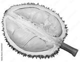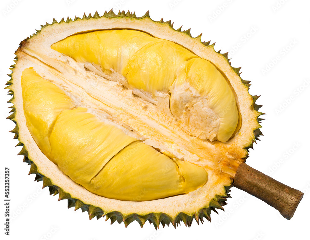 Fresh durian with leaf on white background, Durian fruit on white PNG file.