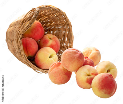 White Peach fruit drop from the basket on white background, White Peach fruit on white PNG File.