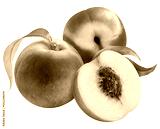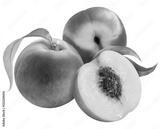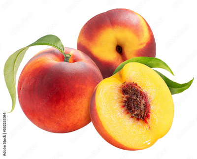Peach fruit with leaf on white background, Fresh Peach on White Background PNG File.
