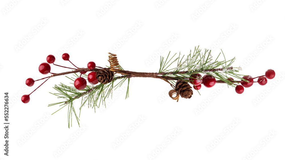 Fir branch, with branches of red berries and snow isolated. christmas tree.Christmas green spruce branch, decoration red berries holly. green fir tree branch, isolated on transparent background png