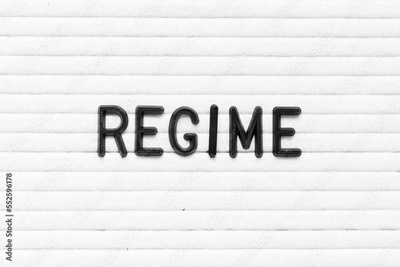 Black color letter in word regime on white felt board background