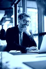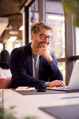 Mature Businessman Wearing Glasses Working On Laptop At Desk In Office
