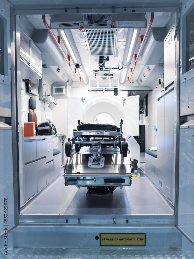 Emergency mobile stroke unit. Ambulance van furnishes services to diagnose stroke patients.