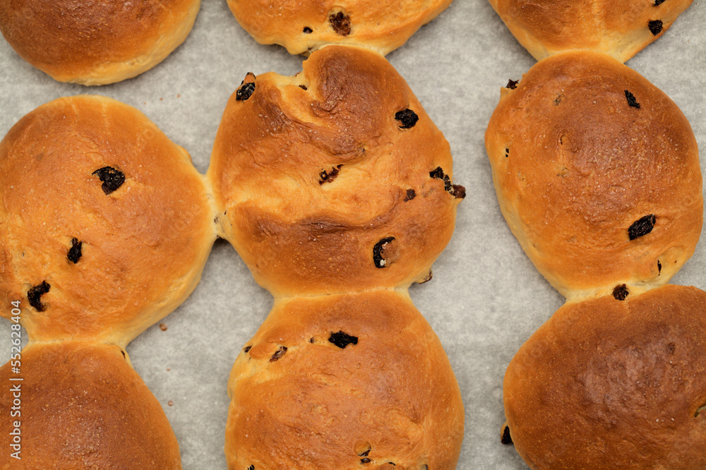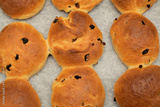 Simple round home made sweet buns with raisins
