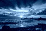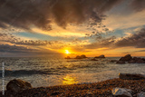 Sunset sky over sea and rocks