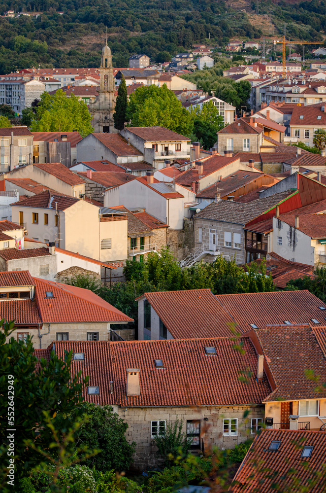 General view of the houses and the convent of Santa Clara in the medieval village of Allariz. Galicia. Spain.