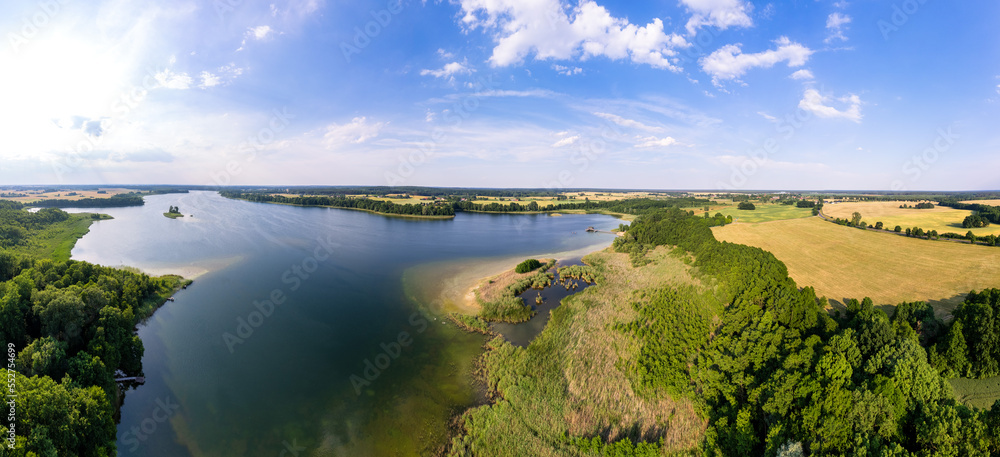 Beautiful landscape with the river in the countryside. summer. view from the drone Barlinek, West Pomeranian Voivodeship, Poland