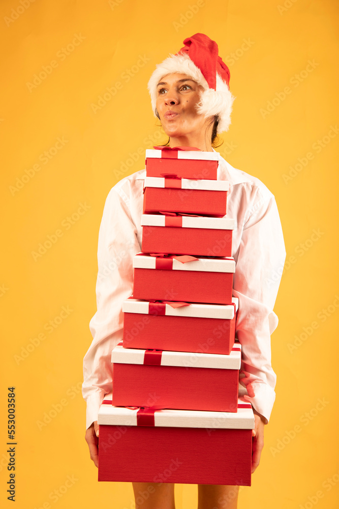 Christmas woman. Happy day. Gifts. Love girl. Happy.