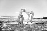 young woman practicing yoga outdoors. Wheel pose , Dhanurasana.