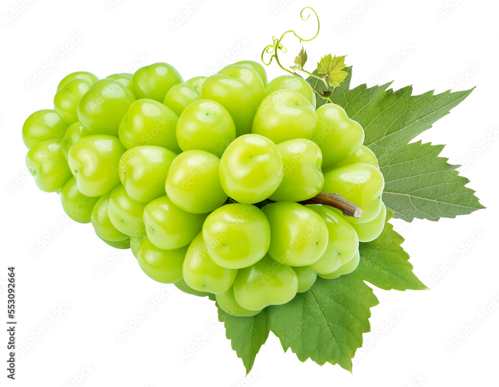 Sweet grape with leaves on white, Shine Muscat Grape on white PNG file.