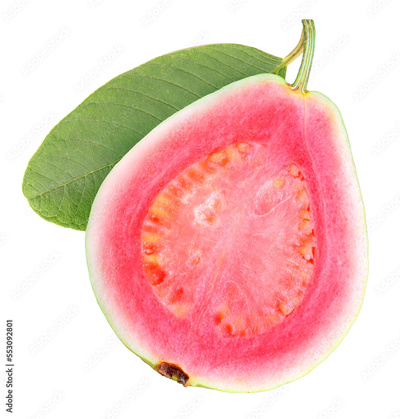Pink guava fruit with leaf on white background, Fresh Pink guava on White PNG file.
