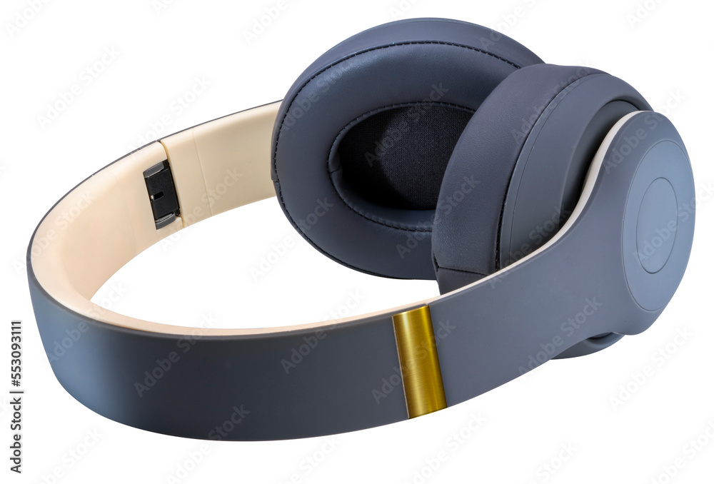 Gray headphone on white background, Black wireless headphones on white PNG File.