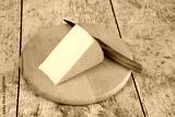 tranche de fromage à pâte pressée avec une croûte orange, gros plan