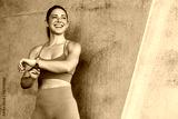 Happy female athlete wearing sports wear and checking her pulse rate with smartwatch while outdoors exercising
