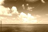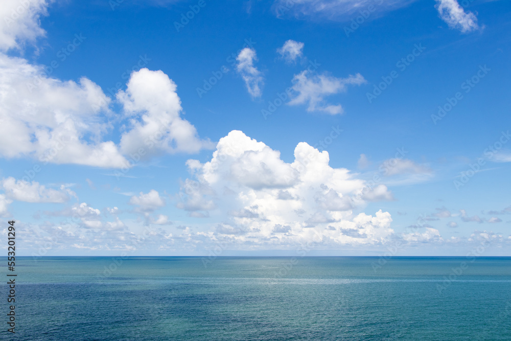Beautiful calm turquoise color sea and blue sky with white color cloud background