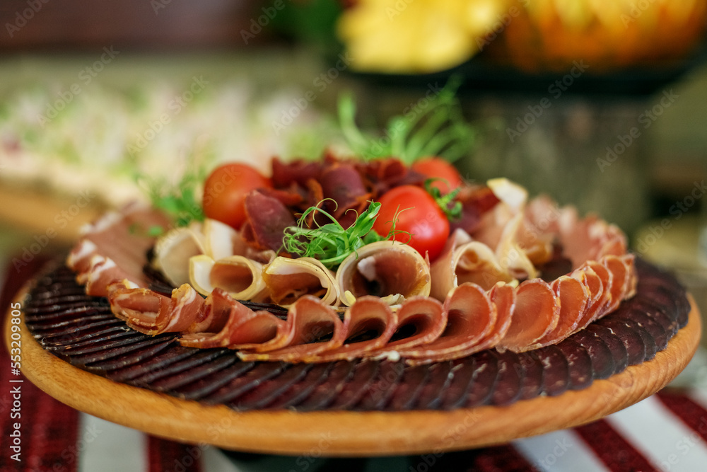 catering buffet table with snacks and appetizers. Concept for event, celebration and banquet.