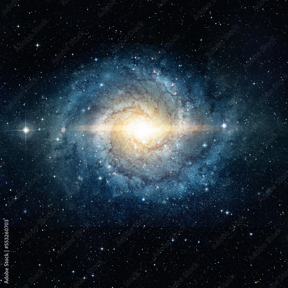 A view from space to a spiral galaxy and stars. Universe filled with stars, nebula and galaxy,. Elements of this image furnished by NASA.