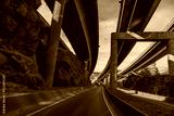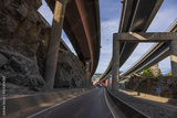 Beautiful view of road under bridge constructions. Modern technology concept. Stockholm. Sweden. Europe.
