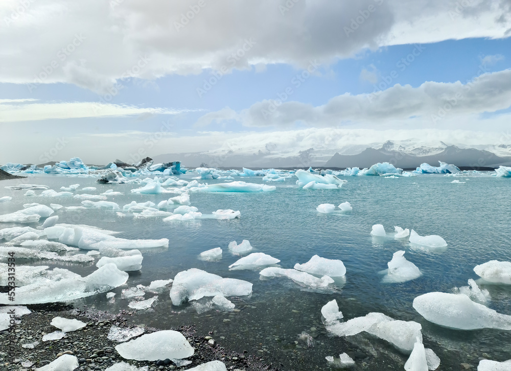 Iceland, Jokulsarlon Lagoon, Turquoise icebergs floating in Glacier Lagoon on Iceland.