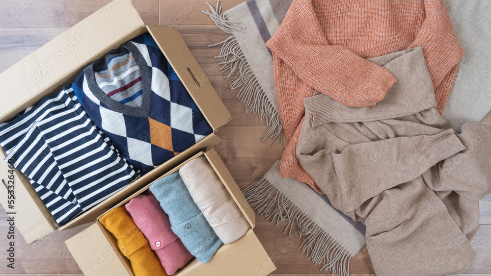 段ボールに入れた服|衣替え・断捨離・リサイクル イメージ