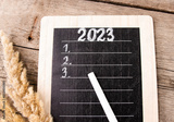 Mockup letter, list, on wooden table, flat lay. Letter template with copy space.