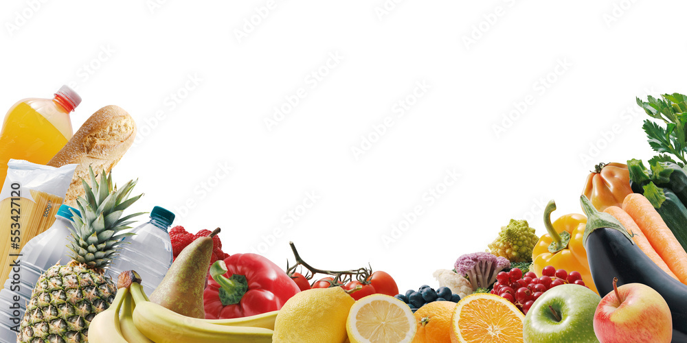 Assortment of fresh groceries and copy space